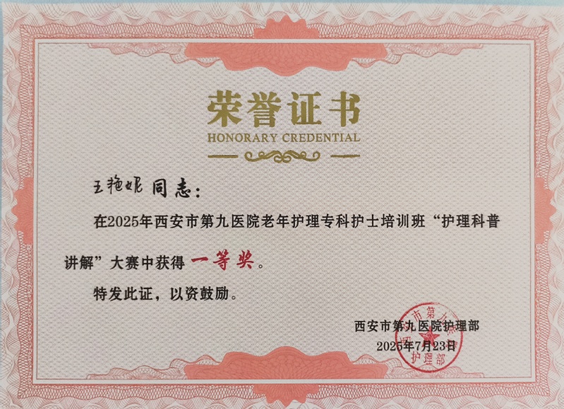 王艳妮荣获西安市第九医院“护理科普讲解”大赛一等奖