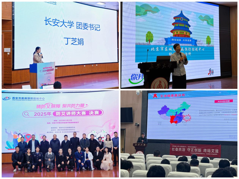 系列活动多点发力、有序推进。11月21日,由西安市疾控中心主办、我校等单位承办的2025年防艾讲师大赛决赛在北校区顺利举行。活动创新融合知识普及与演讲竞技,选手们以生动表达传递科学防艾理念,有效强化了师生的防艾意识与社会责任感。11月27日,校医院联合研工部、学工部特邀雁塔区、未央区疾控中心专家,分别在南校区东院伯声报告厅、北校区师生服务大厅第二报告厅开展专题讲座。专家结合案例深入解读艾滋病传播途径、预防措施及检测渠道,全面提升了师生防艾知识知晓率。